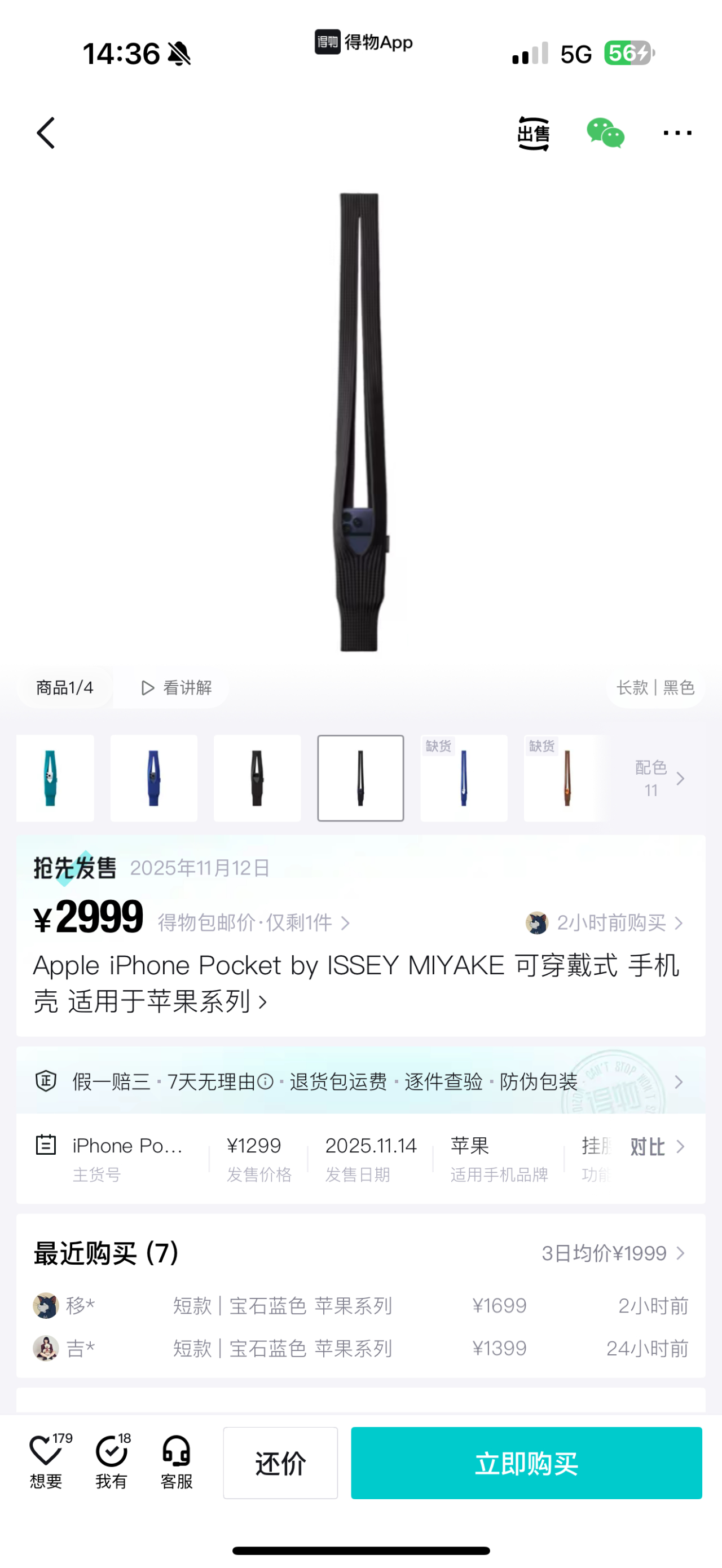 据介绍,在中国内地,该配件仅在上海Apple静安零售店和苹果官网有售。该新品敏捷招引果粉重视并引发热议,开售仅半小时,苹果官网线元的iPhone Pocket均已售罄。热度之下,市场上也呈现溢价现象。得物App多个方面数据显现,截止至发稿,iPhone Pocket长款和短款均有不同程度的溢价,其间黑色长款最高现已涨至2999元。